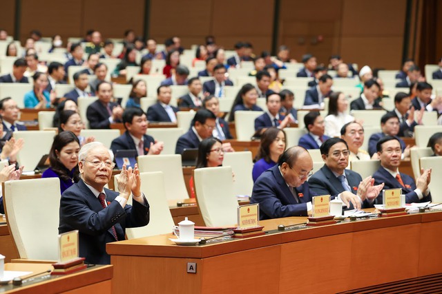 Phát biểu bế mạc kỳ họp, Chủ tịch Quốc hội Vương Đình Huệ cho biết, Quốc hội đã dành nhiều thời gian thảo luận tình hình và kết quả thực hiện kế hoạch phát triển kinh tế-xã hội, ngân sách nhà nước, kế hoạch đầu tư công năm 2022; vui mừng, đánh giá cao những kết quả quan trọng, nổi bật, khá toàn diện đã đạt được cả về phát triển kinh tế-xã hội; bảo đảm quốc phòng, an ninh; an sinh xã hội; chăm sóc người có công và công tác đối ngoại của các đồng chí lãnh đạo Đảng, Nhà nước, đặc biệt của đồng chí Tổng Bí thư Nguyễn Phú Trọng đã góp phần nâng cao vị thế, vai trò, uy tín của Việt Nam trên trường quốc tế.