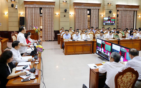 | Tại hội nghị trực tuyến sáng 28/9. |