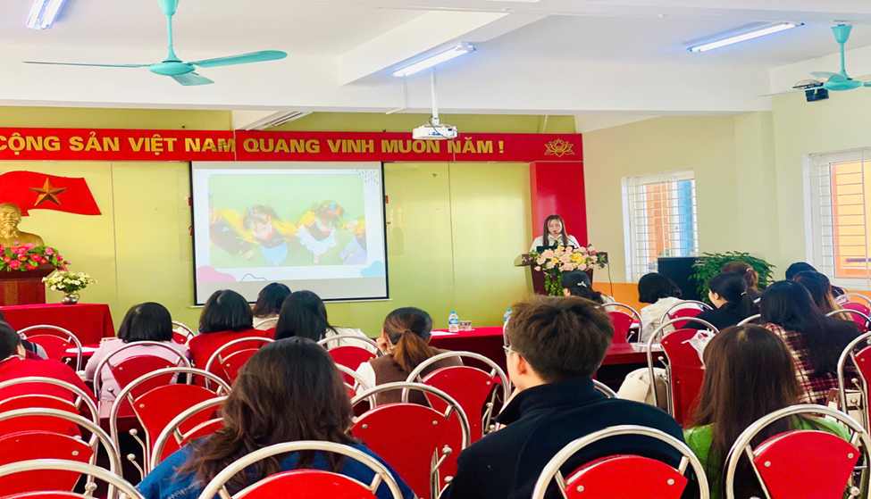Sau phần trình chiếu, cô giáo Nguyễn Thị Hiền tiếp tục trình bày tham luận về “Công tác phối hợp với cha mẹ trong việc đảm bảo quyền lợi cho trẻ khuyết tật”, chia sẻ nhiều giải pháp thiết thực nhằm xây dựng mối liên kết bền chặt giữa giáo viên và phụ huynh, giúp trẻ được quan tâm, hỗ trợ đồng bộ cả ở trường và ở nhà.