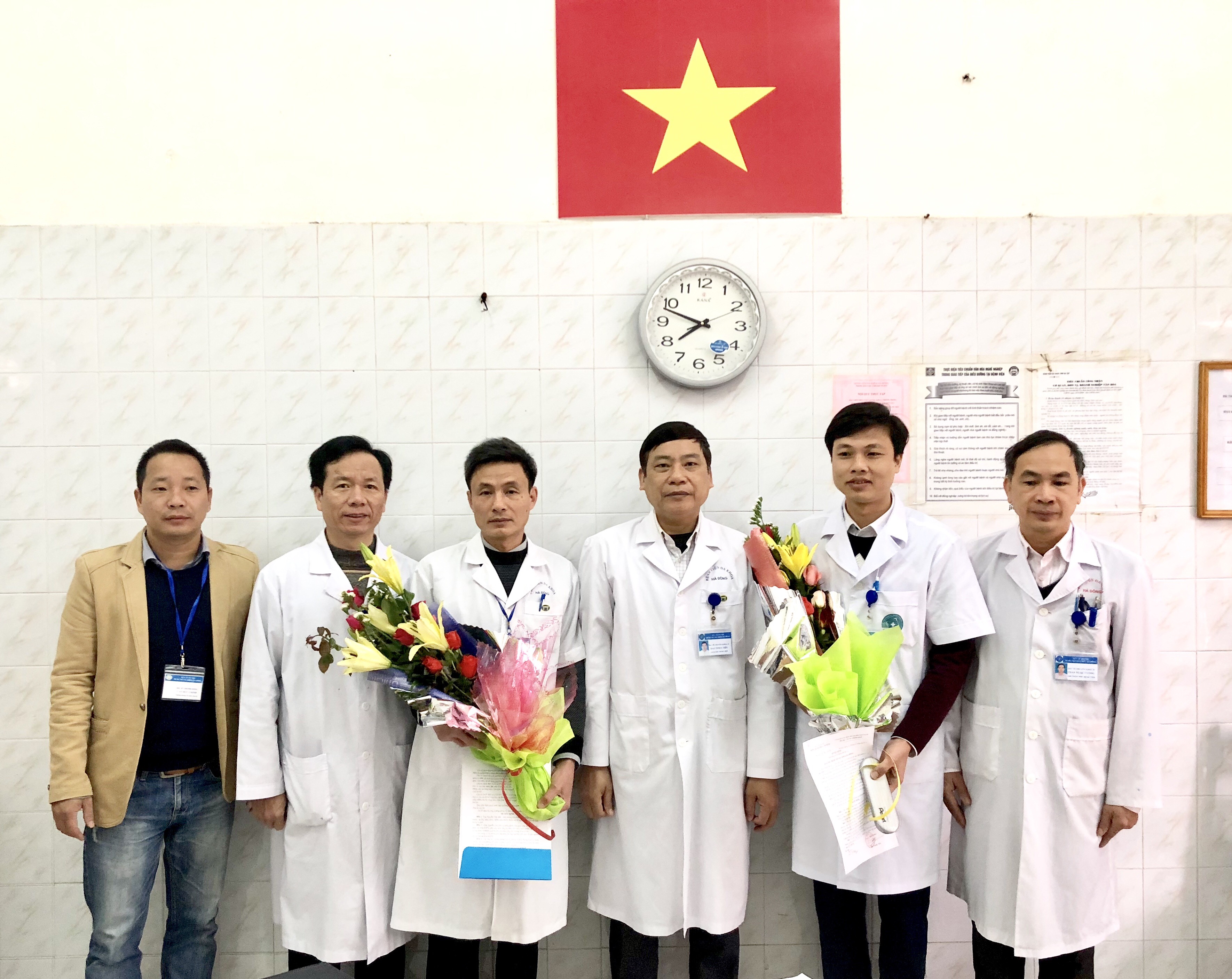 | Đồng chí Nguyễn Xuân Thiêm(đứng thứ 2 từ phải sang) nhận quyết định bổ nhiệm Phó trưởng khoa phụ trách khoa Kiểm soát Nhiễm khuẩn |