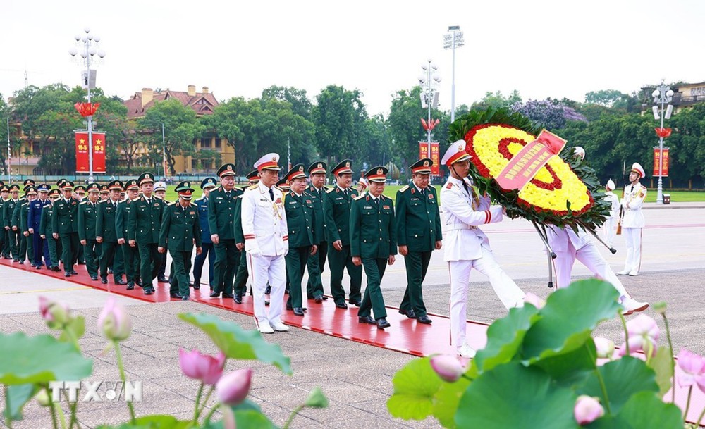 Đoàn đại biểu Quân ủy Trung ương, Bộ Quốc phòng, vào Lăng viếng Chủ tịch Hồ Chí Minh. Ảnh: TTXVN