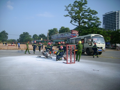 | Cảnh sát PCCC Thái Nguyên diễn tập xử lý tình huống khi xảy ra cháy nổ |