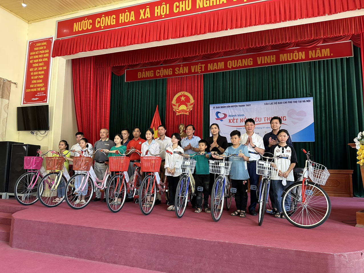 CLB báo chí Phú Thọ tại Hà Nội trao tặng xe đạp cho các gia đình và em học sinh có hoàn cảnh khó khăn, học tập vượt khó tại huyện Thanh Thủy, tỉnh Phú Thọ.
