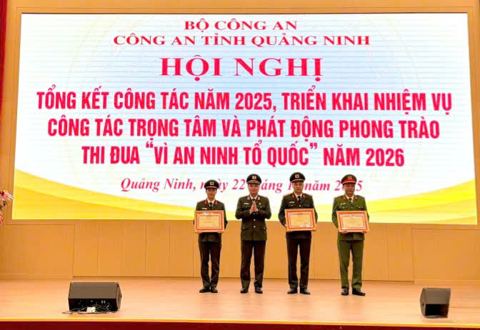 Với những thành tích đặc biệt xuất sắc, năm 2025, Công an tỉnh Quảng Ninh được Bộ Công an tặng "Cờ thi đua Vì An ninh Tổ quốc”; 1.526 lượt tập thể, cá nhân được các cấp khen thưởng; trong đó có 1 tập thể được phong tặng danh hiệu Anh hùng LLVT nhân dân; 2 tập thể và 8 cá nhân được Chủ tịch nước tặng thưởng Huân chương Chiến công, Huân chương Bảo vệ Tổ quốc các hạng.