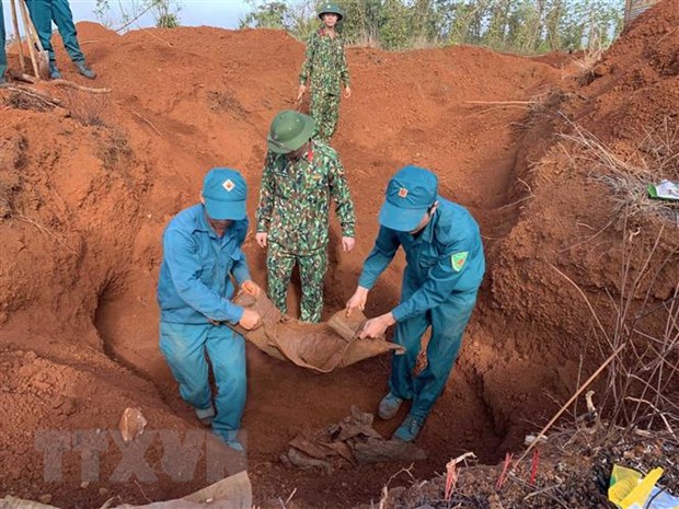 Cơ quan chức năng và cựu chiến binh tiến hành quy tập mộ liệt sỹ. Ảnh: TTXVN phát.