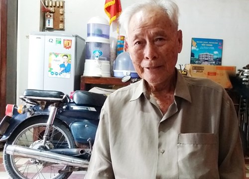 Cụ Trần Cang với chiếc xe máy cũ vẫn sử dụng khi đi làm từ thiện. Ảnh: kienthuc.net