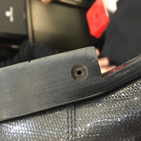 bị nứt vít sắp rơi ra, phần da bị gấp gãy.