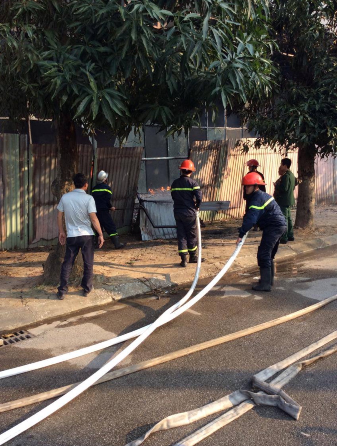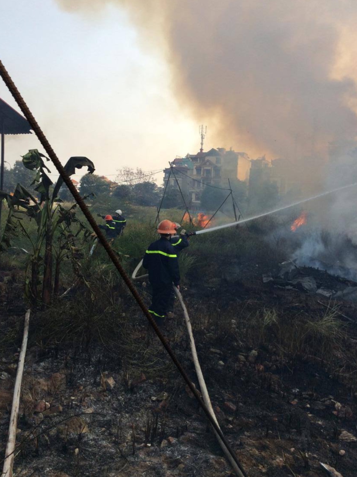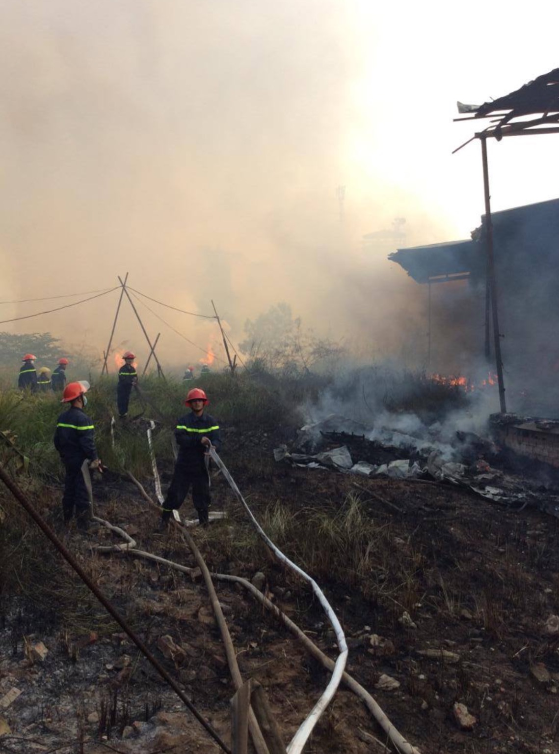 Lực lượng PCCC đã có mặt tại hiện trường sau khi nhận được thông tin báo cháy. Đám cháy hiện đã được khống chế, tuy nhiên cháy lan sang đám cỏ.