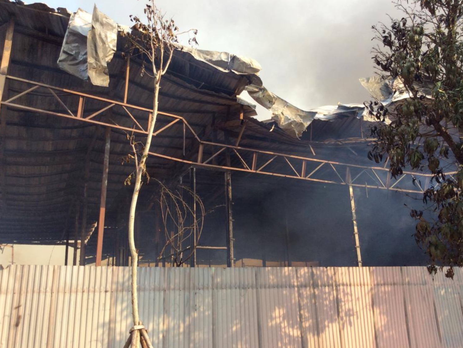 Đám cháy bốc lên từ một nhà xưởng đã để hoang từ lâu tại ngõ 677, Lạc Long Quân, Hà Nội.
