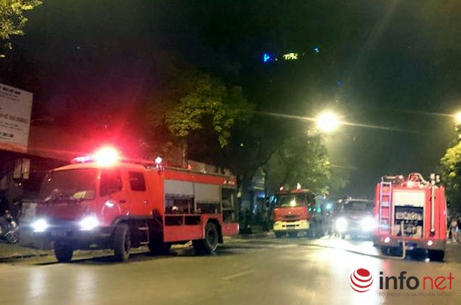 Nhưng để đảm bảo an toàn cho khu dân cư và khu thương mại Tràng Tiền plaza gần đó, Sở PCCC vẫn huy động thêm xe bơm giảm áp tại khu xưởng in trong ngõ 22 Hai Bà Trưng.