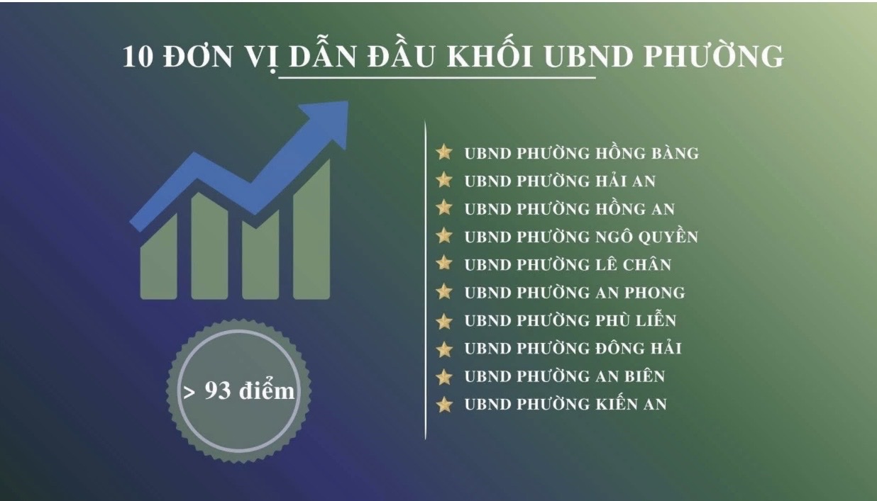 Đối với khối phường, phường Hồng Bàng xếp thứ nhất với 95,8 điểm; phường Hải An xếp thứ hai với 95,77 điểm; phường Hồng An xếp thứ ba với 95,57 điểm; phường Ngô Quyền xếp thứ tư với 95,08 điểm.