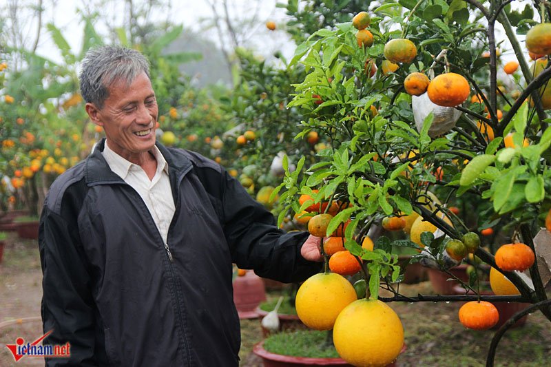 Hiện tại vườn của ông Giáp có hơn 60 gốc cây cảnh ngũ quả nhưng quá nửa trong đó đã có người đặt hàng từ cách đây nhiều tháng.