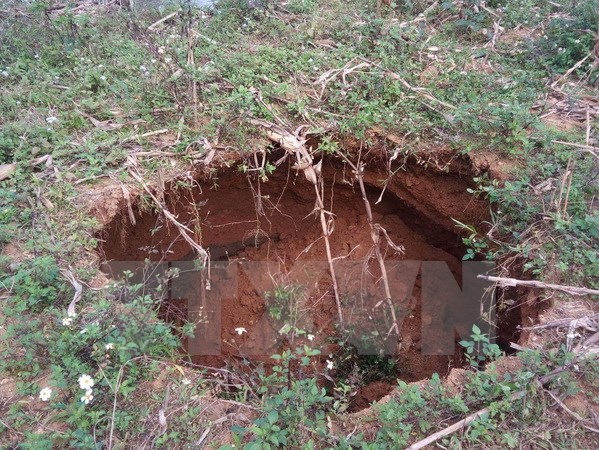Một điểm sụt lún tại huyện Chợ Đồn, tỉnh Bắc Kạn. (Ảnh: Mạnh Hà/TTXVN)
