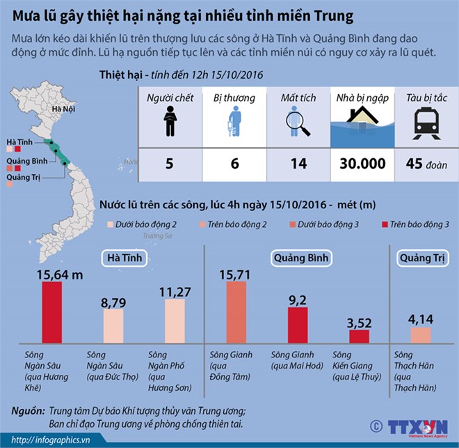 Mưa lũ gây thiệt hại nặng tại nhiều tỉnh miền Trung