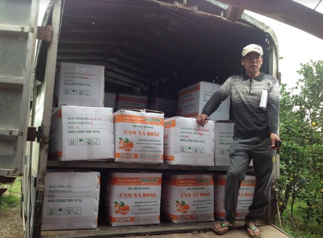 Tuy nhiên, thay vì ghi trên bao bì ghi là “Cam Yên Thành”, ông Giáo lại đề là “Cam Xã Đoài” còn ông Bình thì ghi là “Trại cam Ông Bình Hói”. Theo đó, giá bán 1 ky cam của ông Bình tại trang trại là 45.000đồng. Vụ cam 2015 về trước, ông Giáo không bán cam tại trang trại mà cho xe chở về thẳng các điểm ở TP Vinh và xã Bảo Thành, bán với giá 75.000 đồng/kg. Sở dĩ ông giáo có giá bán cam Yên Thành cao hơn hẳn giá cam ông Bình là vì dòng chữ “Cam Xã Đoài”.