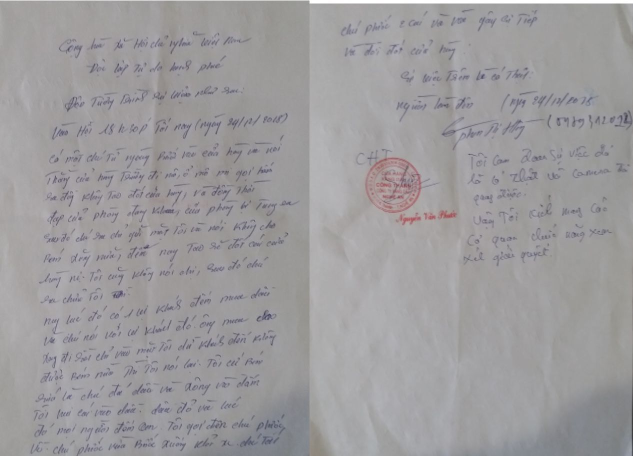 Xác nhận nội dung bản tường trình gửi Công an xã Công Thành, ông Nguyễn Văn Phước - Trưởng Cửa hàng xăng dầu Công Thành ghi rõ: “Tôi cam đoan sự việc đó là có thật và camera đã quay được. Vậy tôi kính mong các cơ quan chức năng xem xét, giải quyết”.