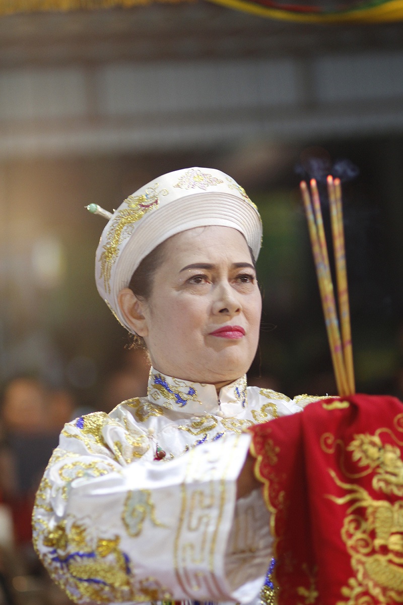 Trong thực hành tín ngưỡng thờ Mẫu tam phủ của người Việt, nghệ nhân Trần Thị Huệ luôn giữ phép tắc chỉ hành lễ ở không gian tâm linh, có điện thờ hoặc nơi trang trọng.