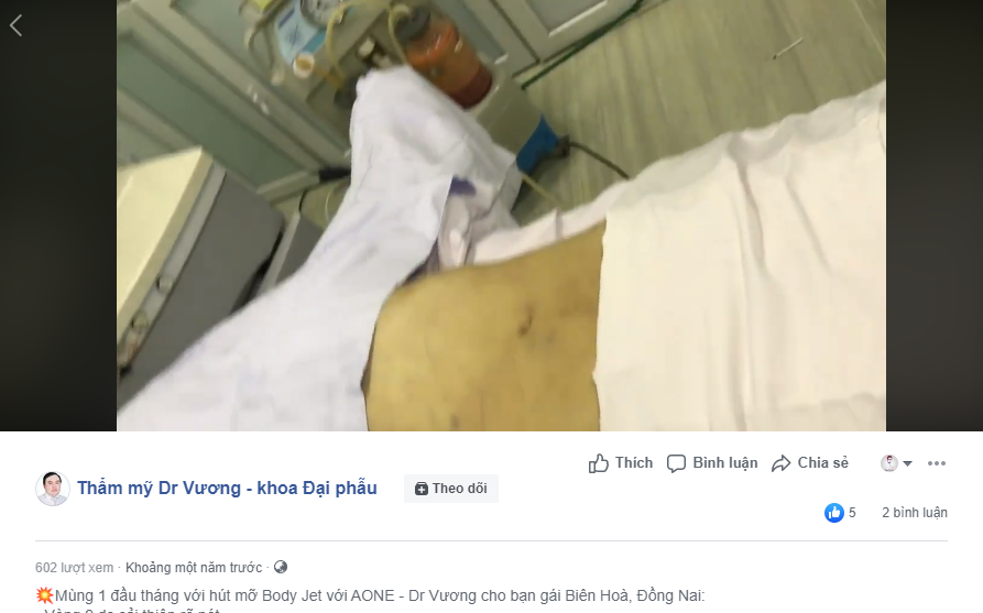 Hình ảnh một ca hút mỡ được ghi hình trên trang Thẩm mỹ Dr Vương - khoa Đại phẫu.