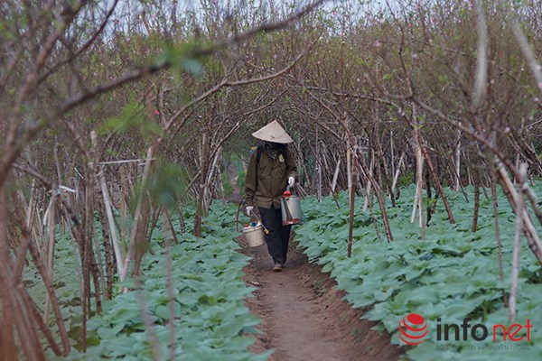 | "Tôi bắt đầu bán đào từ đầu tháng vừa rồi, ngày nào cũng có khách tới mua đào về cắm, còn lại chủ yếu là để bán buôn" - cô Cau, một người trồng đào tại Nhật Tân cho biết. |