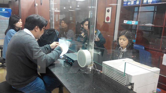 | Người dân đến làm thủ tục thay đổi đăng ký kinh doanh tại Phòng đăng ký kinh doanh của Sở Kế hoạch và Đầu tư Hà Nội. (Ảnh: Mạnh Khánh/TTXVN) |