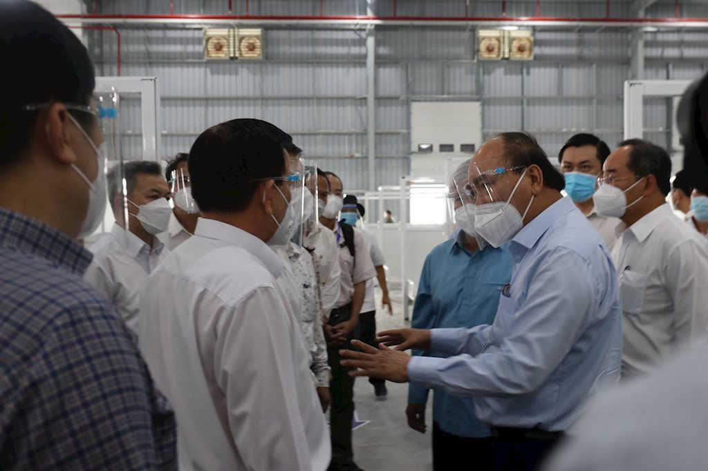 Chủ tịch nước Nguyễn Xuân Phúc chỉ đạo đẩy nhanh tiến độ để sớm đưa khu điều trị 5.000 giường vào hoạt động. Ảnh Lê Cúc - Kiemsat.vn.