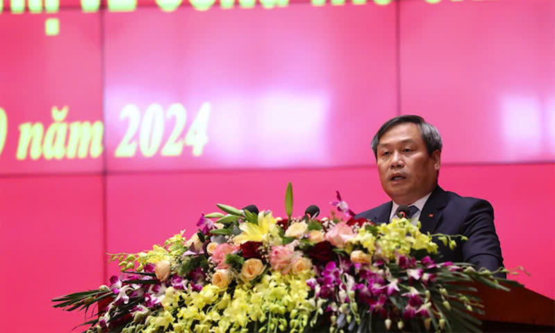 Ông Lê Minh Hưng, Ủy viên Bộ Chính trị, Bí thư Trung ương Đảng, Trưởng ban Tổ chức Trung ương phát biểu tại hội nghị