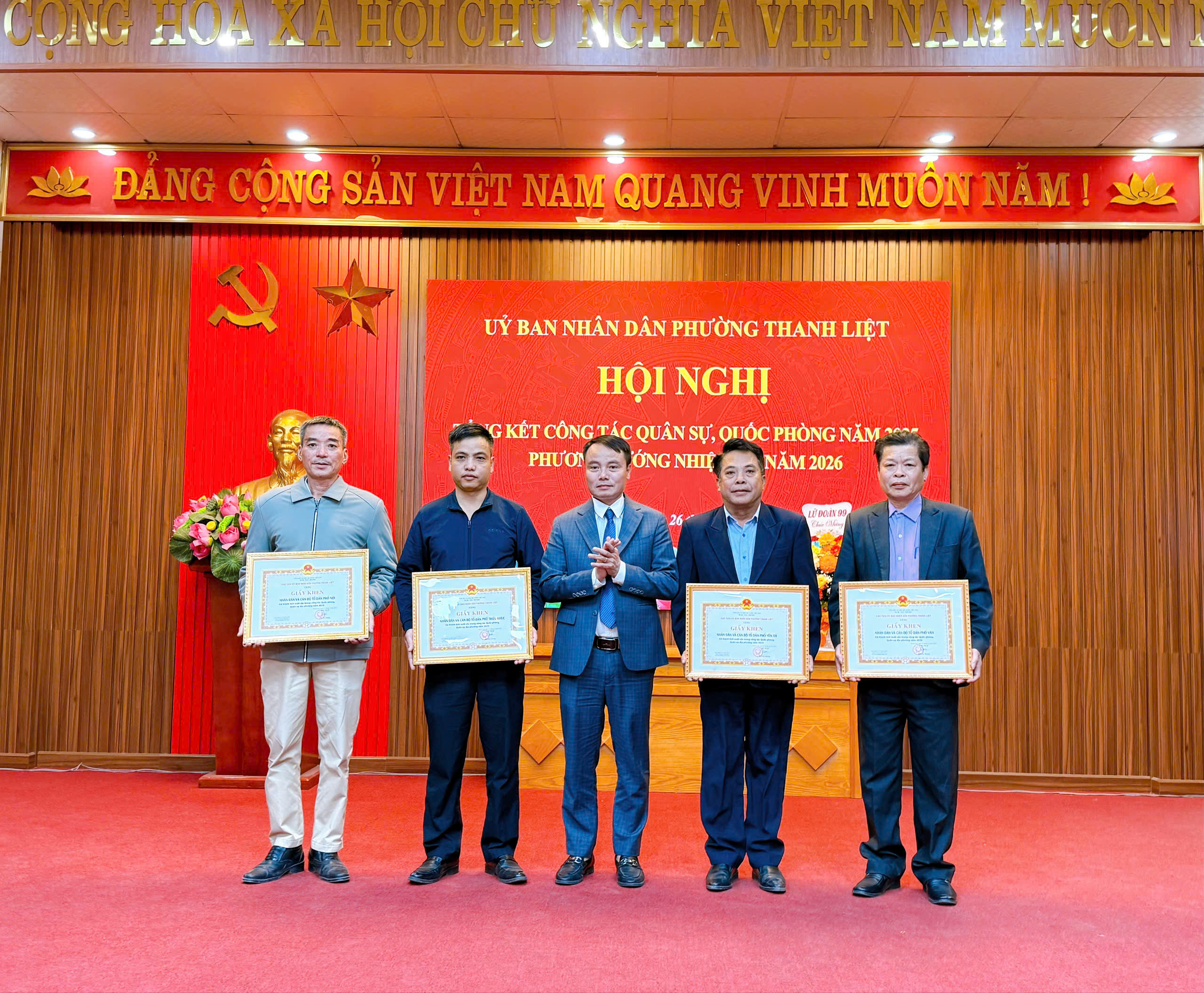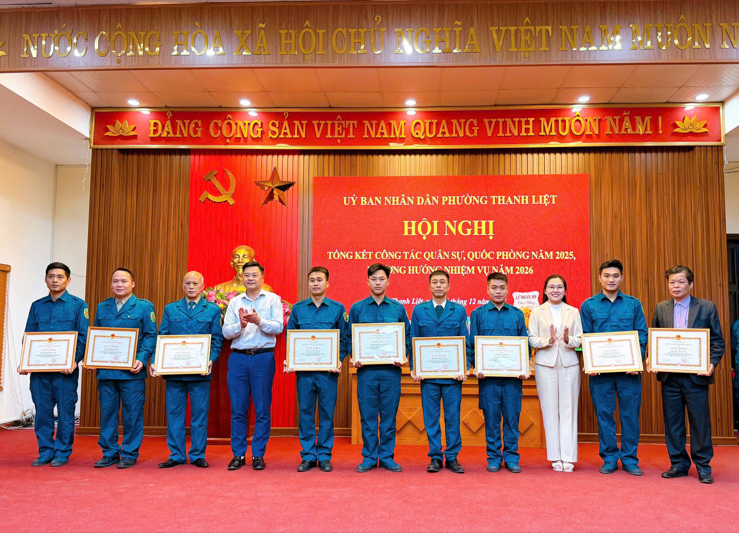 Nhân dịp này, UBND phường Thanh Liệt biểu dương khen thưởng 4 tập thể và 10 cá nhân có thành tích xuất sắc trong công tác quốc phòng, quân sự địa phương năm 2025.