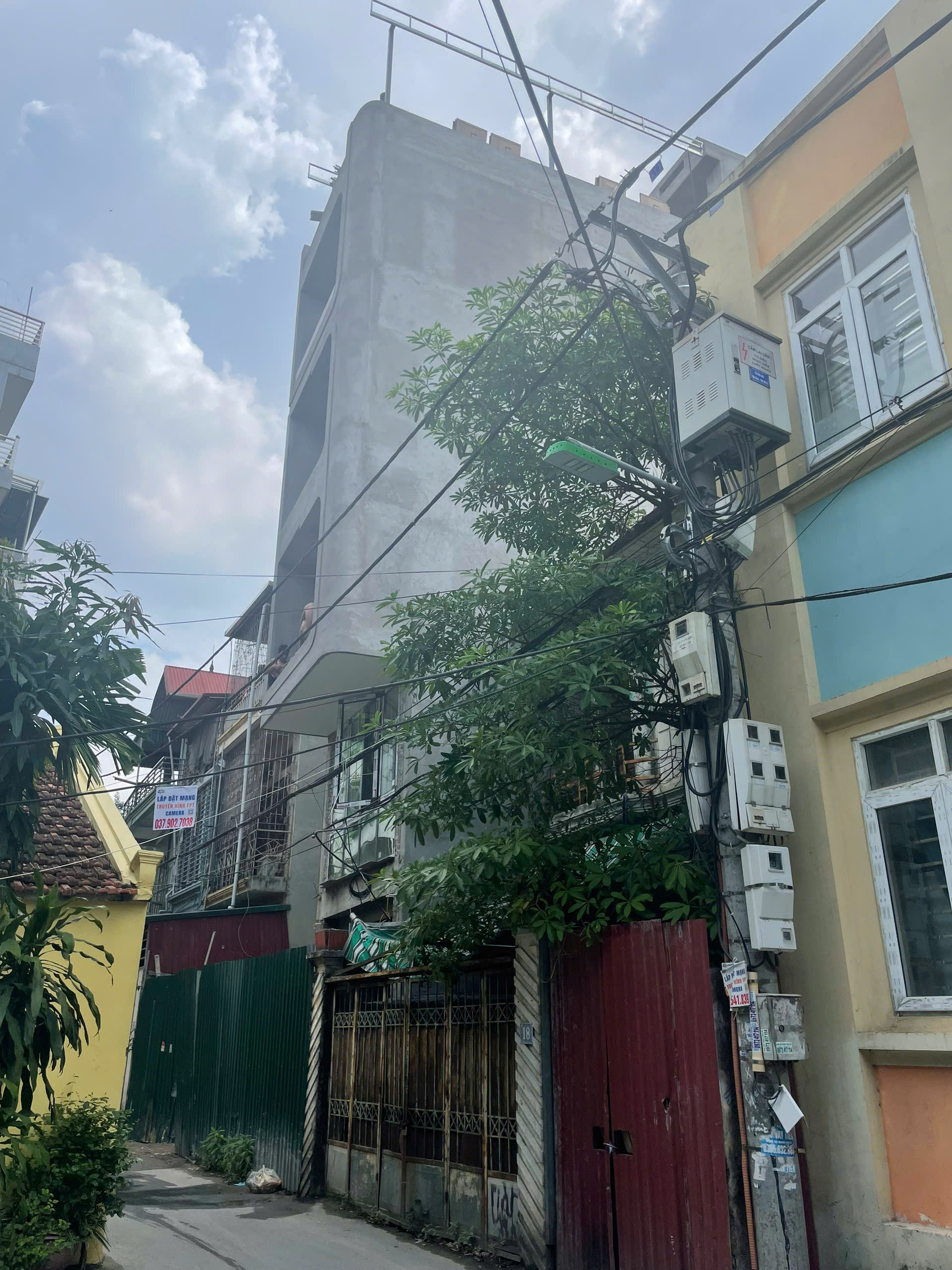Mặt sau của công trình tại đầu ngách 205/53 đường Xuân Đỉnh. Nhìn từ mặt sau nhiều người dân cho rằng đây là công trình 8 tầng