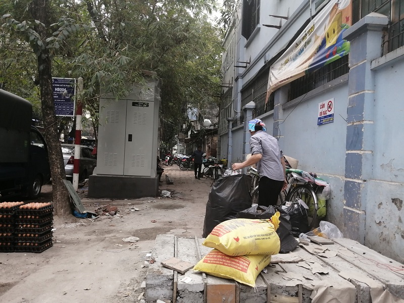 Chủ nhà ngang nhiên lấn chiếm vỉa hè, lòng đường để tập kết phế liệu, đồng nát, sắt vụn, vật liệu có nguy cơ cháy nổ… đe dọa tới cuộc sống sinh hoạt của người dân. Các vật liệu dễ bắt cháy được bày la liệt xung quanh như: tấm xốp, bìa cát tông, bình khí nén… gây mất an toàn trong việc di chuyển cũng như đe dọa tính mạng khi hỏa hoạn xảy ra.