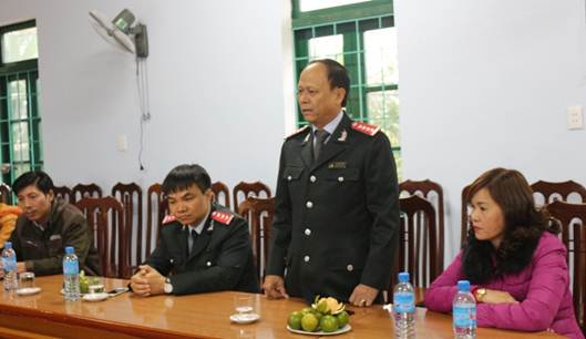 Ông Lê Văn Hộ, Phó Giám đốc Trung tâm Giáo dục Trẻ khuyết tật huyện Lệ Thủy phát biểu cảm ơn sự hỗ trợ của Thanh Tra Bộ Xây dựng.