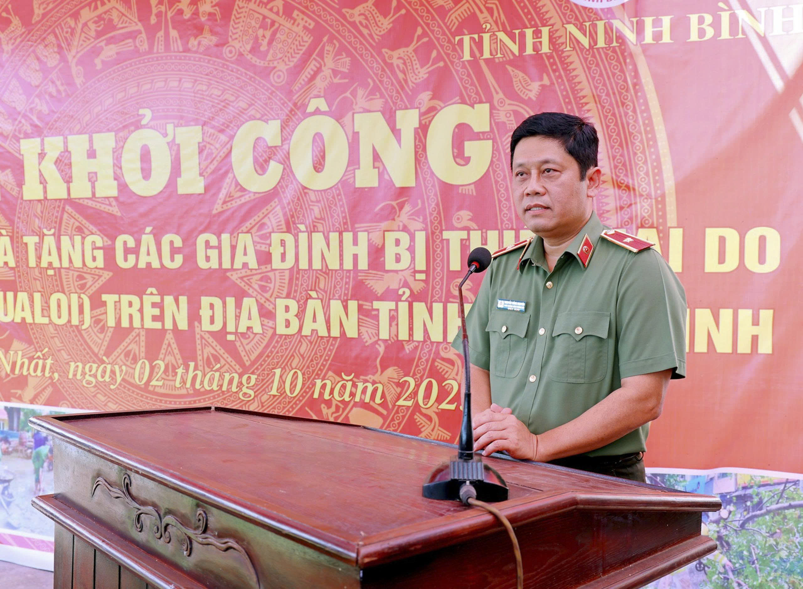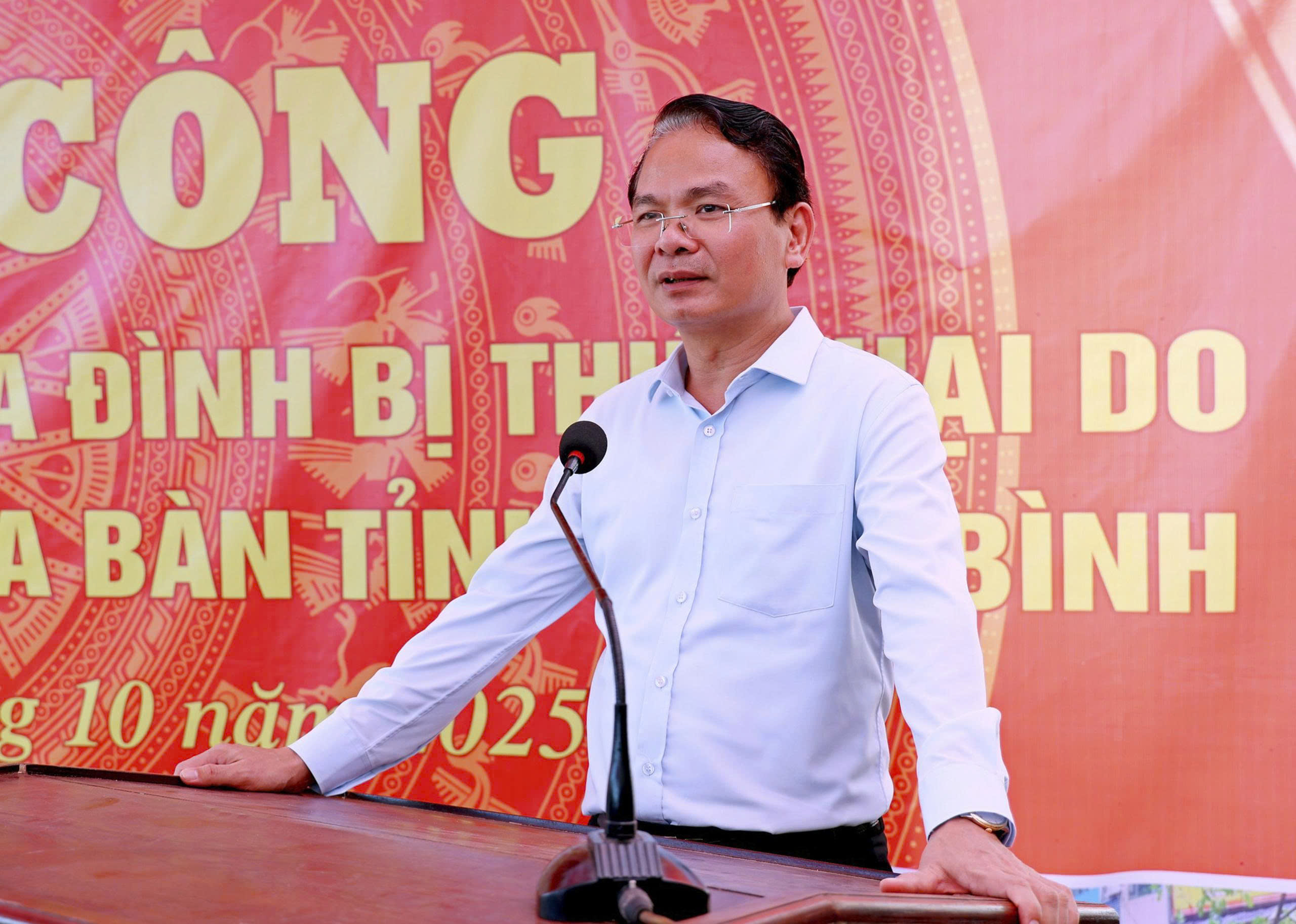 Phát biểu tại Lễ khởi công, đồng chí Đặng Xuân Phong, Bí thư Tỉnh ủy cũng chia sẻ những mất mát to lớn của người dân do ảnh hưởng của cơn bão số 10 gây ra. Đồng thời đồng chí cũng yêu cầu Công an tỉnh tăng cường lực lượng hỗ trợ người dân khắc phục hậu quả sau bão và khẩn trương phối hợp với chính quyền các địa phương xây dựng nhà ở mới đảm bảo nhanh nhất, chất lượng nhất để người dân sớm ổn định, yên tâm lao động sản xuất, vươn lên trong cuộc sống.