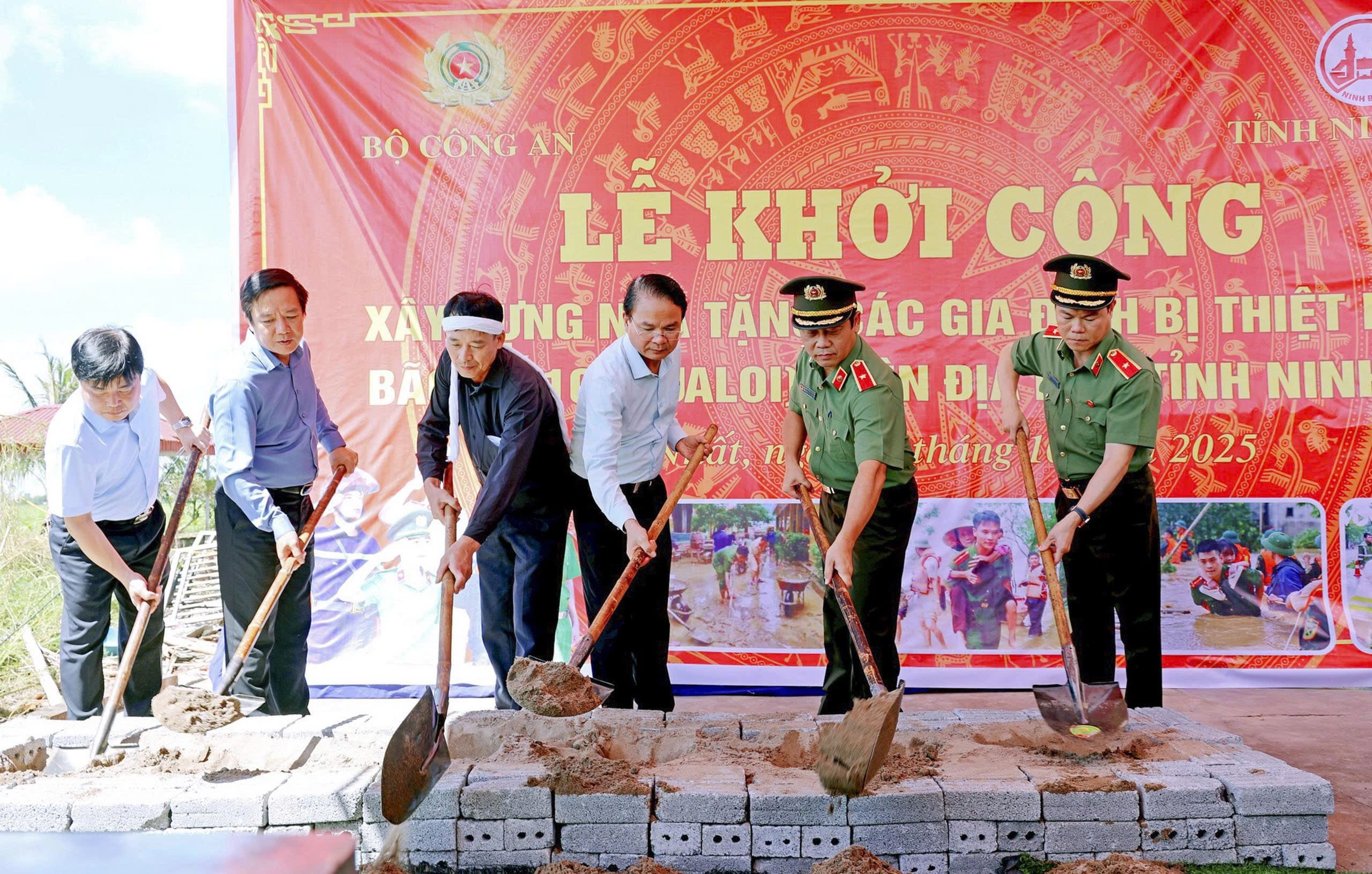 Phát huy tinh thần “Lúc dân cần, lúc dân khó, có Công an”, thời gian qua, lực lượng Công an trong toàn quốc đã huy động tối đa lực lượng, phương tiện tham gia phòng chống bão lụt, giúp đỡ nhân dân khắc phục hậu quả thiên tai. Đối với các hộ bị thiệt hại do bão gây ra ở Ninh Bình, Bộ Công an phối hợp với Tỉnh ủy, UBND tỉnh bố trí kinh phí, giao cho Công an tỉnh chủ trì, phối hợp với các lực lượng, ban ngành chức năng và chính quyền địa phương khẩn trương khởi công xây dựng nhà ở, đảm bảo chất lượng, hiệu quả, phù hợp với đặc điểm phong tục, tập quán của địa phương, sớm ổn định cuộc sống cho người dân.