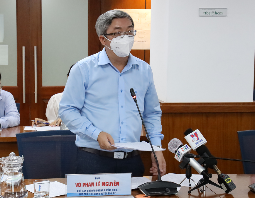 Thông tin về tình hình dịch bệnh trên địa bàn, Phó Chủ tịch UBND huyện Nhà Bè Võ Phan Lê Nguyễn cho biết, hiện nay, huyện được đánh giá tình hình dịch bệnh ở cấp độ 2, tuy nhiên 5 ngày gần đây, trên địa bàn đã có tăng 62 ca. Từ ngày 5/11 - 9/11 phát sinh 543 ca, trong đó nguồn lây từ các doanh nghiệp ở các KCX và doanh nghiệp bên ngoài là 250 ca, chiếm khoảng 46%. Trong đó, KCN Hiệp Phước, chiếm 21%; KCX Tân Thuận chiếm 26%, KCN Long Hậu chiếm 37% và các đơn vị ngoài chiếm 15%.