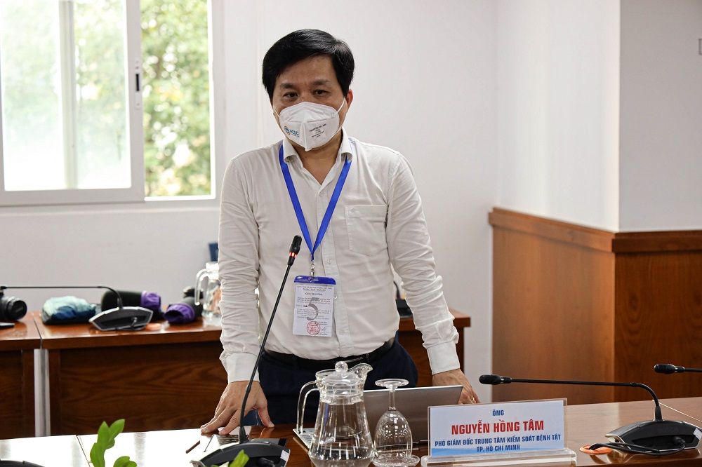 Phó Giám đốc Trung tâm Kiểm soát bệnh tật TP.HCM (HCDC) Nguyễn Hồng Tâm cung cấp thông tin tại buổi hợp báo - Ảnh: Khang Minh.