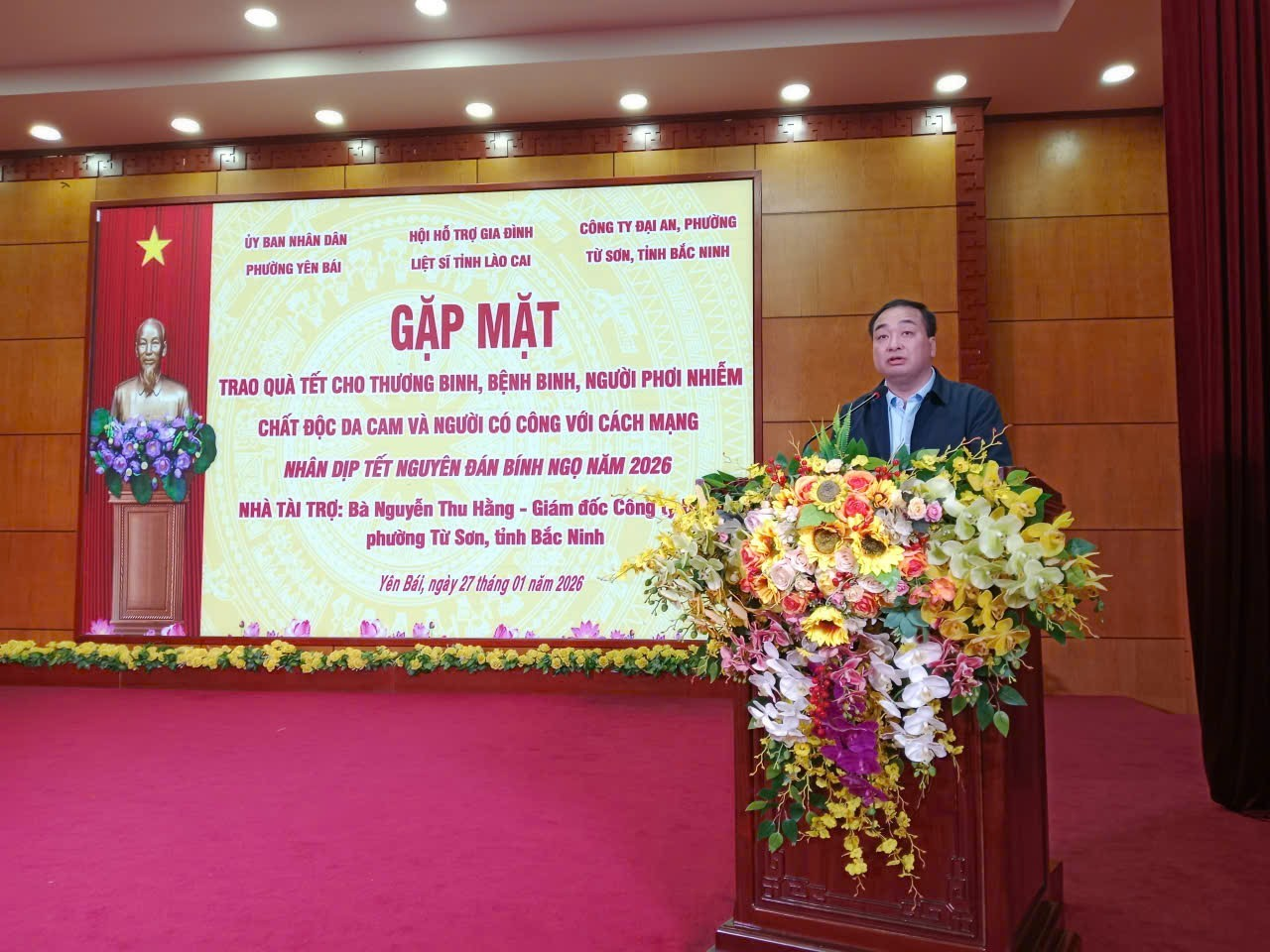 Thay mặt lãnh đạo tỉnh, chính quyền các phường và 200 đại biểu, đồng chí Đoàn Hữu Phung - Ủy viên Ban Chấp hành Đảng bộ tỉnh Lào Cai, Bí thư Đảng ủy, Chủ tịch HĐND phường Yên Bái đã phát biểu ghi nhận và gửi lời cảm ơn sâu sắc đến sự quan tâm, giúp đỡ của đại diện Công ty Đại An đối với nhân dân tỉnh Lào Cai. Đồng chí cũng gửi lời chúc doanh nghiệp tiếp tục gặt hái nhiều thành công trong sản xuất kinh doanh và phát triển kinh tế bền vững.