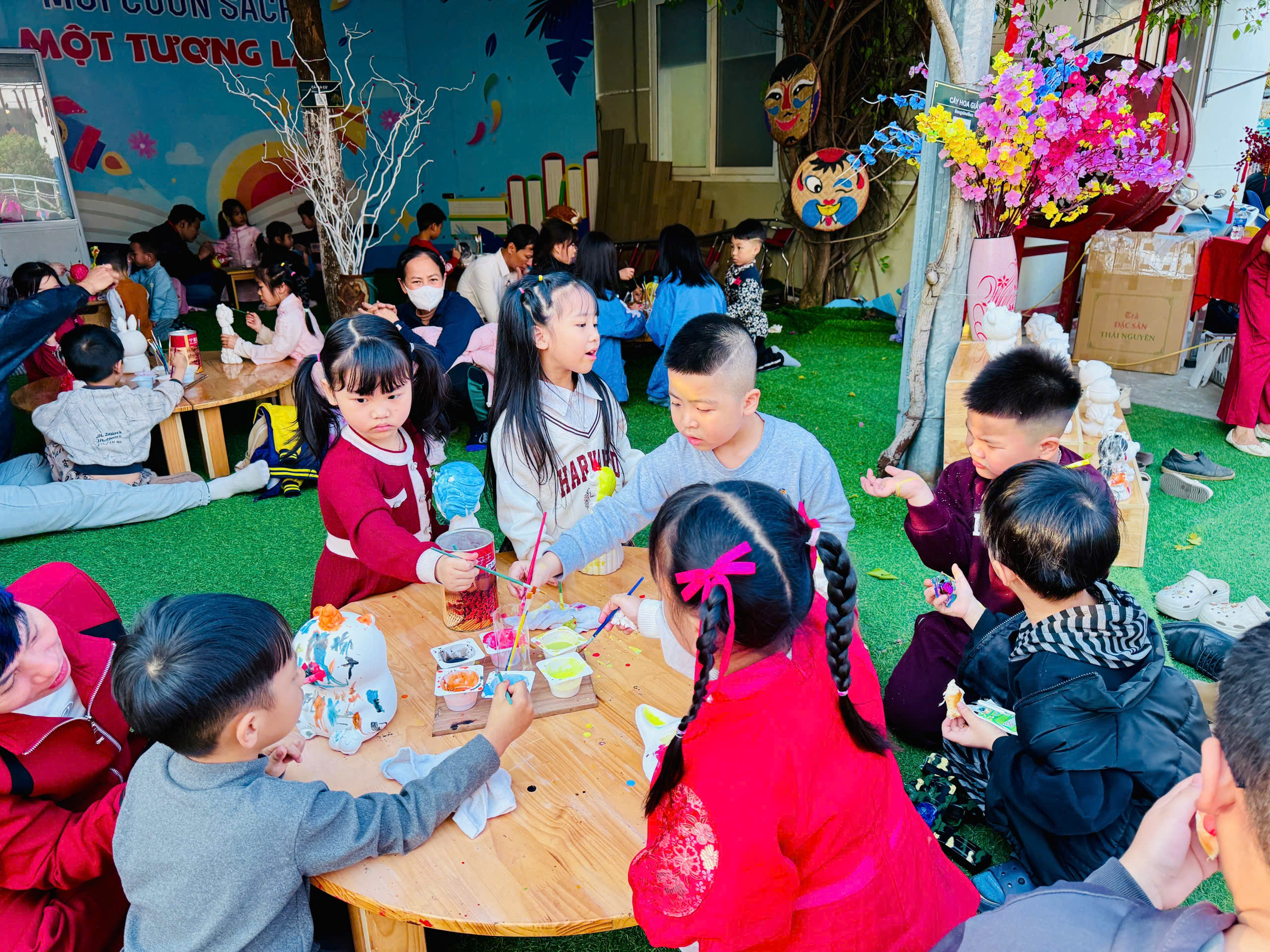 Khu tô tượng náo nhiệt và vui nhộn được các bé tham gia nhiệt tình, sôi nổi...