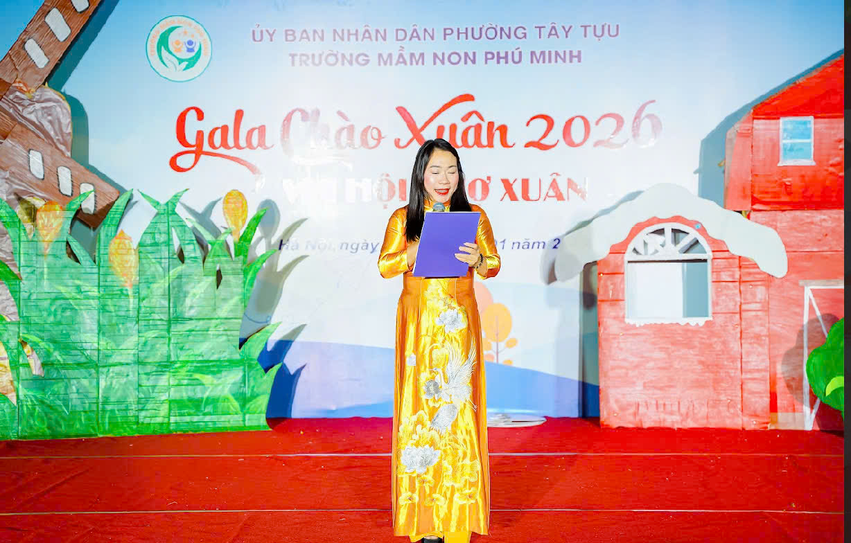Phát biểu tại đêm Gala, cô giáo Nguyễn Thị Thanh Tâm - Hiệu trưởng Nhà trường chia sẻ: “Trong không khí hân hoan, rộn ràng đón chào mùa xuân mới - Xuân Bính Ngọ 2026, hôm nay Trường Mầm non Phú Minh rất vui mừng được tổ chức chương trình Gala Chào Xuân 2026. Đây là dịp đặc biệt để cô và trò nhà trường cùng nhau sum họp, sẻ chia niềm vui, gửi gắm những mong muốn tốt đẹp cho một năm mới an lành, hạnh phúc và thành công.