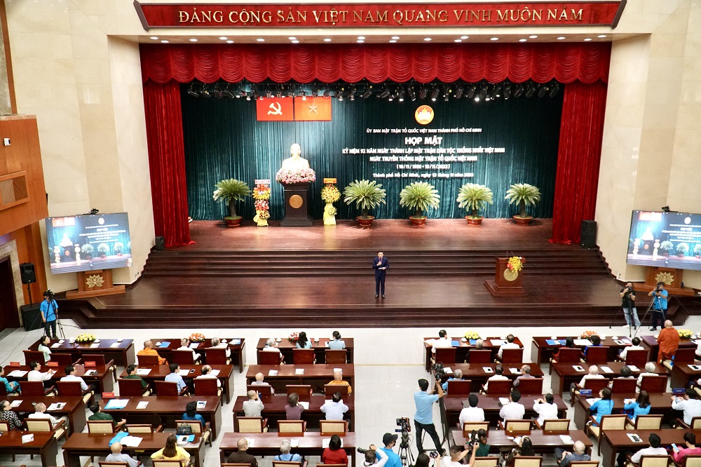 Ngày 12/11, Ủy ban MTTQ Việt Nam TP Hồ Chí Minh tổ chức họp mặt kỷ niệm 92 năm Ngày thành lập Mặt trận Dân tộc thống nhất Việt Nam và Ngày truyền thống MTTQ Việt Nam (18/11/1930 – 18/11/2022). Đến dự có các đ/c Nguyễn Văn Nên - Bí thư Thành ủy Thành phố; đ/c Huỳnh Đảm, nguyên Chủ tịch Ủy ban Trung ương MTTQ Việt Nam; đ/c Trương Thị Ngọc Ánh - Phó Chủ tịch Ủy ban Trung ương MTTQ Việt Nam; đ/c Nguyễn Thị Lệ - Chủ tịch HĐND Thành phố; đ/c Trần Kim Yến - Chủ tịch Ủy ban MTTQ Việt Nam Thành phố…