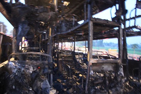 Ông Nguyễn Hải Dương (SN 1957) người chứng kiến vụ tai nạn cho biết: “Vào thời điểm đó, chúng tôi nghe thấy một tiếng nổ rất lớn. Mọi người chạy ra xem thì thấy khói bốc lên rồi lửa bén ra bao trùm lấy chiếc xe. Rất may hành khách và người nhà xe không ai bị thương cả”.