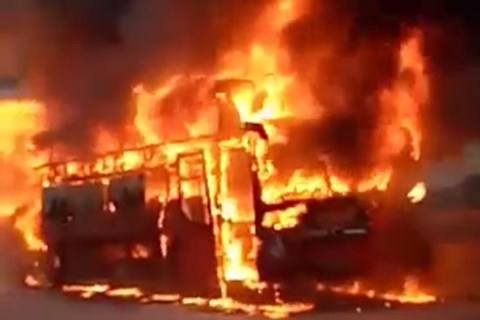 Chiếc xe khách bốc cháy dữ dội trên quốc lộ