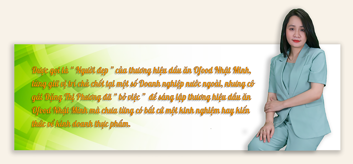 Nữ doanh nhân Đặng Thị Phương hay mọi người thường gọi một cách trìu mến là Người đẹp Ofood Nhật Minh, trải lòng: “ Đơn giản mình là phụ nữ và mỗi lần vào bếp lại tiếp xúc với dầu ăn, gia vị… và một câu hỏi bắt đầu “nhảy múa” trong đầu, đó là làm thế nào để mỗi “bếp Việt” được “ đủ đầy” các loại gia vị, dầu ăn nhưng phù hợp với túi tiền của nhiều gia đình và đây chính là khởi nguồn để Ofood Nhật Minh ra đời”.