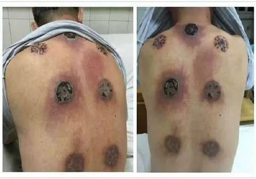 Sau khi trải qua đợt điều trị giác hơi trong một tháng, một người đàn ông 63 tuổi đến từ Tứ Xuyên, Trung Quốc đã cảm nhận được tác động của phương pháp này, dưới dạng bảy vết thương khủng khiếp trên lưng.