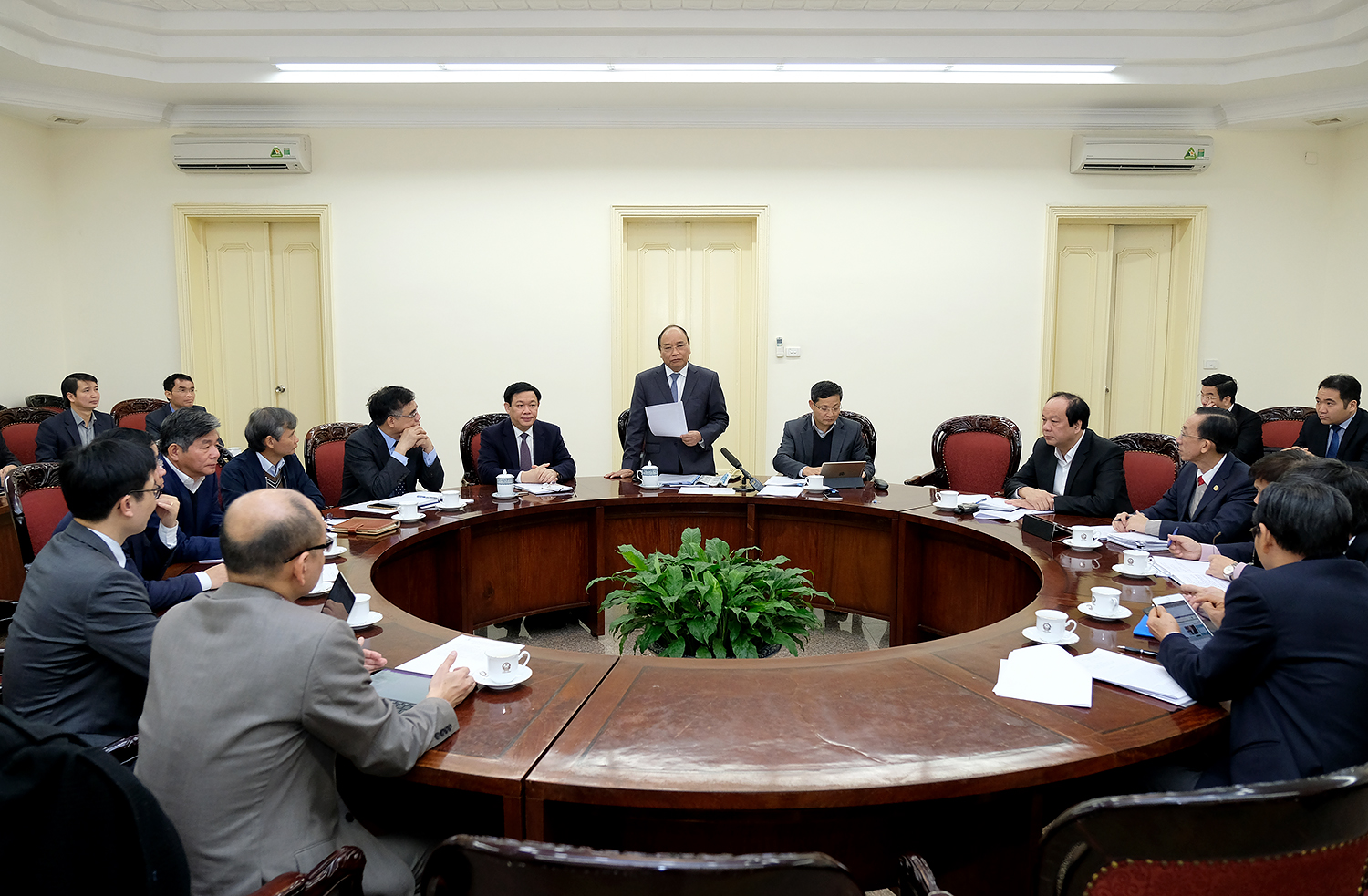| Thủ tướng Nguyễn Xuân Phúc làm việc với Tổ tư vấn kinh tế. Ảnh: VGP/Quang Hiếu |