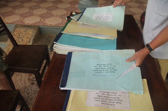 Tay run run lật từng trang, trong sổ từng trang chia thành bốn cột, thứ tự gồm: số thứ tự, tên liệt sỹ, quê quán, năm hi sinh, tất cả đều được ghi bằng tay. Trên danh sách, là những liệt sỹ quê quán ở nhiều tỉnh thành từ Bắc vào Nam họ đã theo cuộc trường chinh và gửi thân xác vào đất đỏ Miền Đông. Để có được danh sách này, ông và đồng đội còn sống phải đi nhiều tỉnh, thành, sà soát danh sách của hàng triệu liệt sỹ. Các ông còn đi đến hầu hết các nghĩa trang trên địa bàn 6 tỉnh, thành vùng Đông Nam Bộ và một số vùng của Cam - Pu - Chia để tìm kiếm bổ sung vào danh sách.