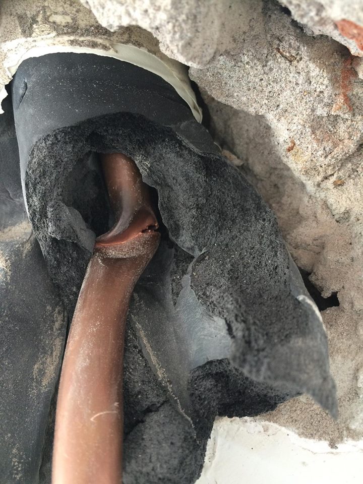 Ống đồng điều hòa chôn sẵn bị tắc nên cư dân phải đục tường ra làm lại