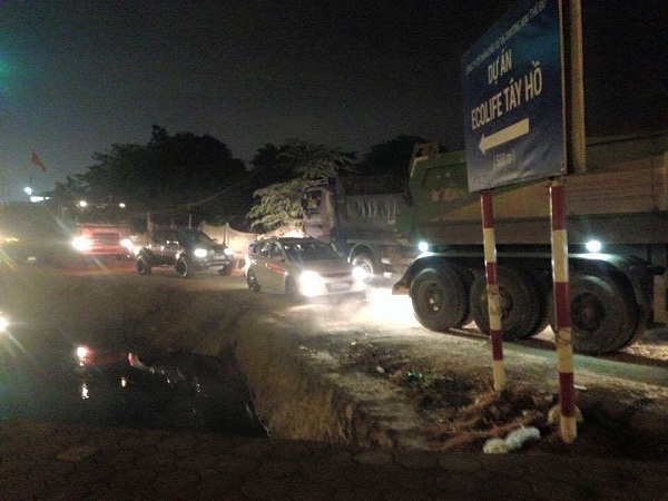 Có lẽ cư dân sẽ không bao giờ dám nghĩ là con đường đi vào khu chung cư được mệnh danh là 'Ecolife Tây hồ, nơi cuộc sống xanh cho hạnh phúc trọn vẹn" lại nhếch nhác, bụi bặm và đầy nguy hiểm như vậy.