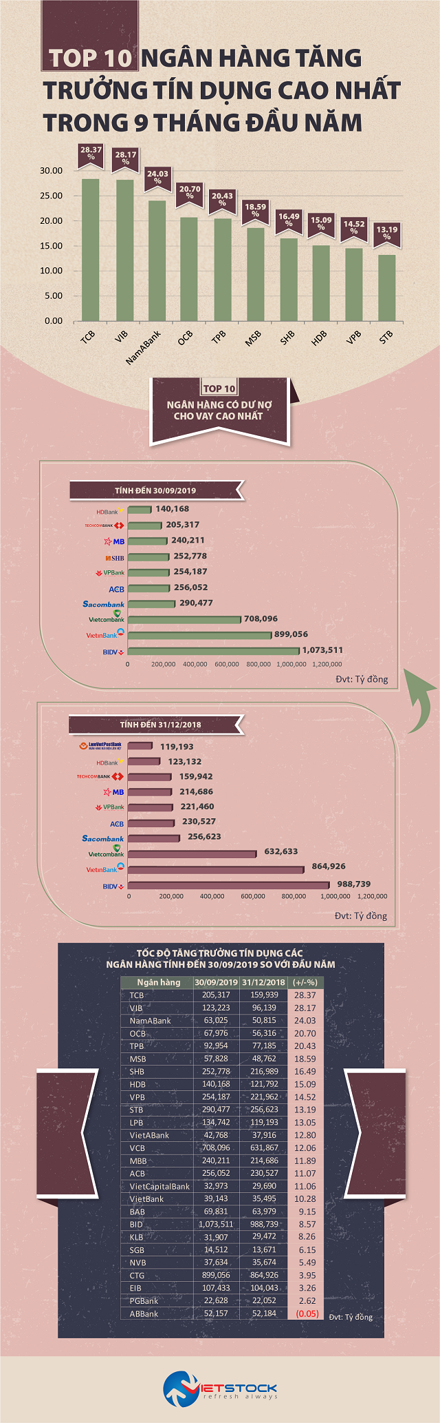 HOANHAP.VN- Tín dụng được xem là nguồn thu chính đem lại lợi nhuận cho các nhà băng. 9 tháng đầu năm 2019, đa số các ngân hàng đều báo lãi lớn, vậy tình hình cho vay có tăng trưởng hay không? Cùng điểm lại các nhà băng có tốc độ tăng trưởng tín dụng cao nhất trong 9 tháng đầu năm 2019.