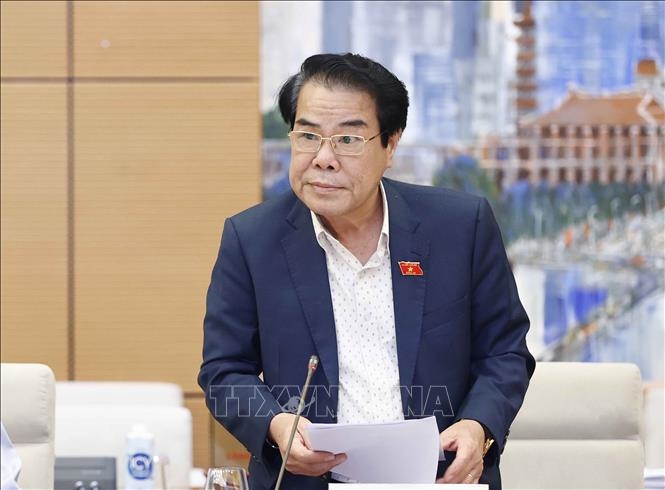 Trưởng ban Dân nguyện thuộc Ủy ban Thường vụ Quốc hội Dương Thanh Bình trình bày báo cáo tại phiên họp. Ảnh: TTXVN