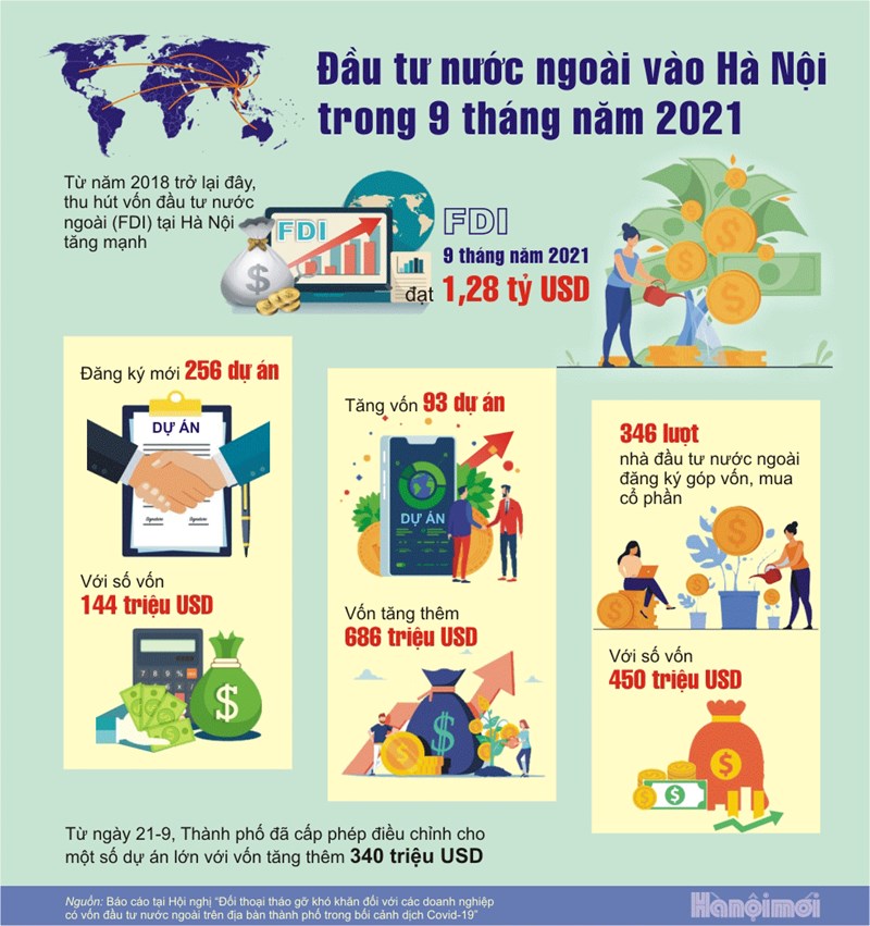 1,28 tỷ USD vốn FDI đầu tư vào Hà Nội trong 9 tháng đầu năm 2021