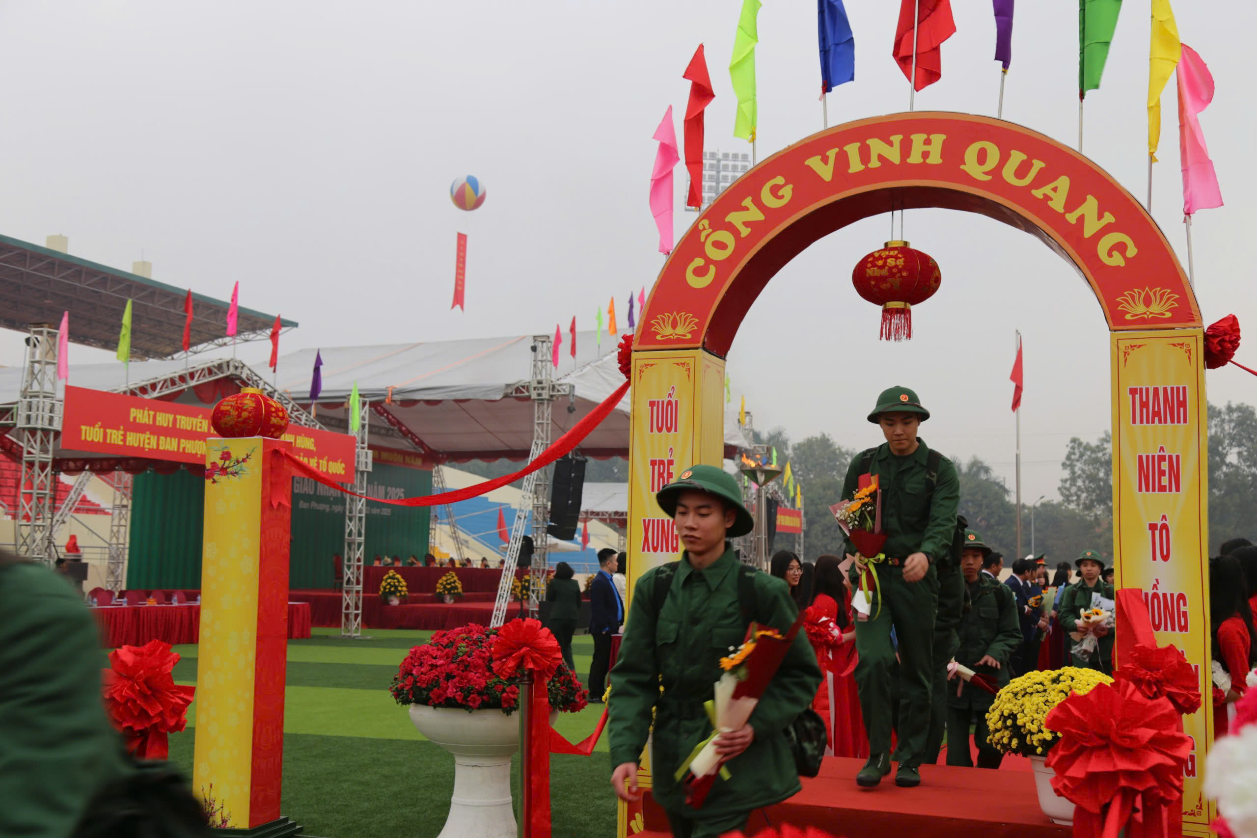 143 thanh niên huyện Đan Phượng, thành phố Hà Nội phấn khởi nhập ngũ.
